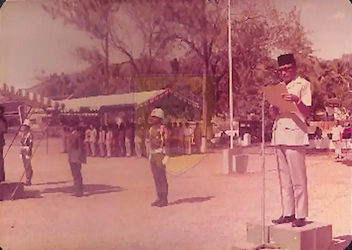 suci. (Agustus 1982)Inspektur Upacara memberikan